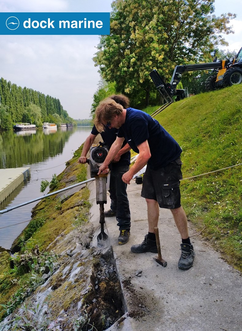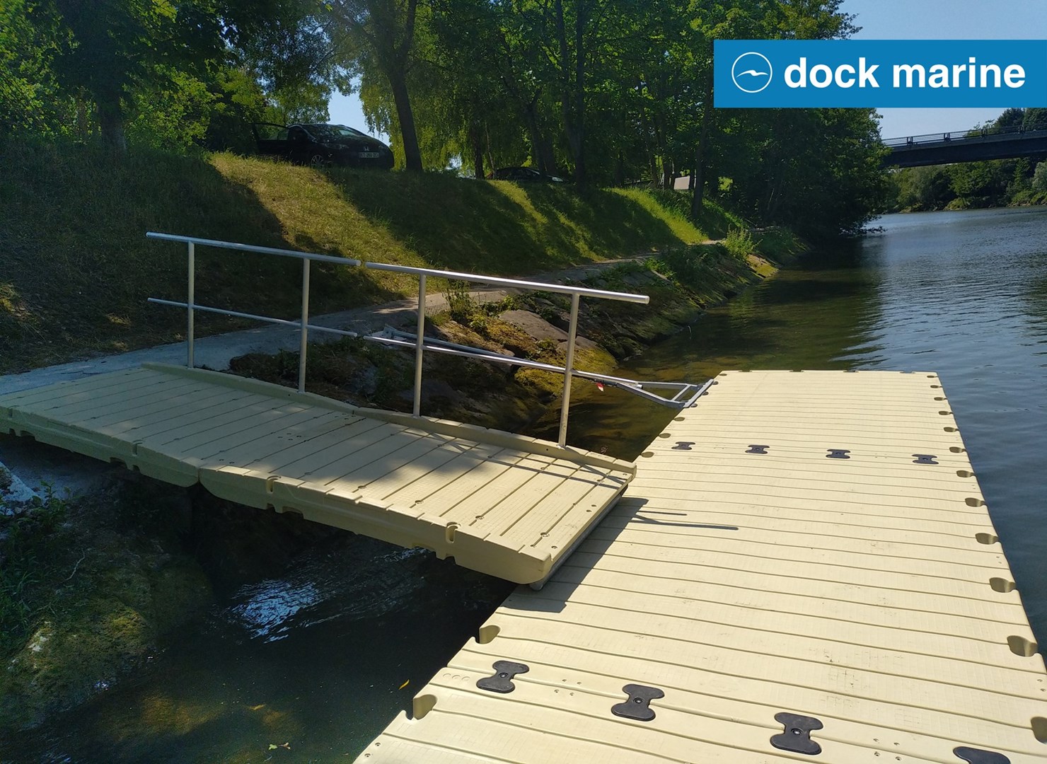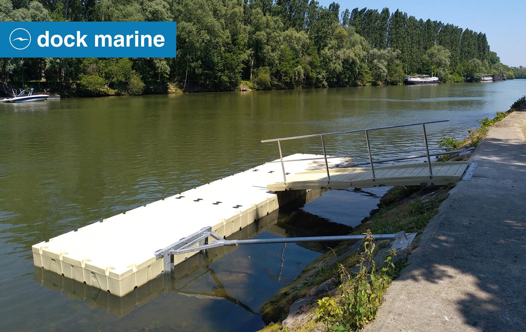 Installation à Mery-sur-Oise (dpt 95) d'un ponton pour canoës et kayaks de 2 x 9 m en sections RotoDock. L'équipe Dock Marine a dû gérer la spécificité du site avec un quai particulièrement haut et un chemin de halage étroit... Enfin un embarcadère approprié pour les mises à l'eau de Val d'Oise Aventures !